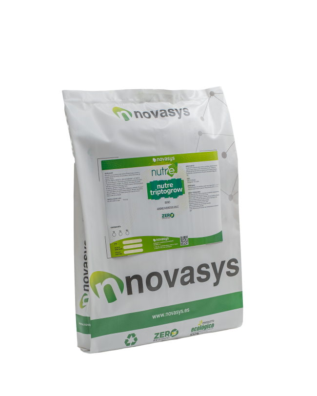 Bioactivador sólido con un 87% de aminoácidos, incluido triptófano, que actúa como estimulante metabólico general. Mejora la actividad vegetativa, favorece la síntesis de proteínas y actúa como corrector de estrés en fases de alto consumo energético del cultivo.